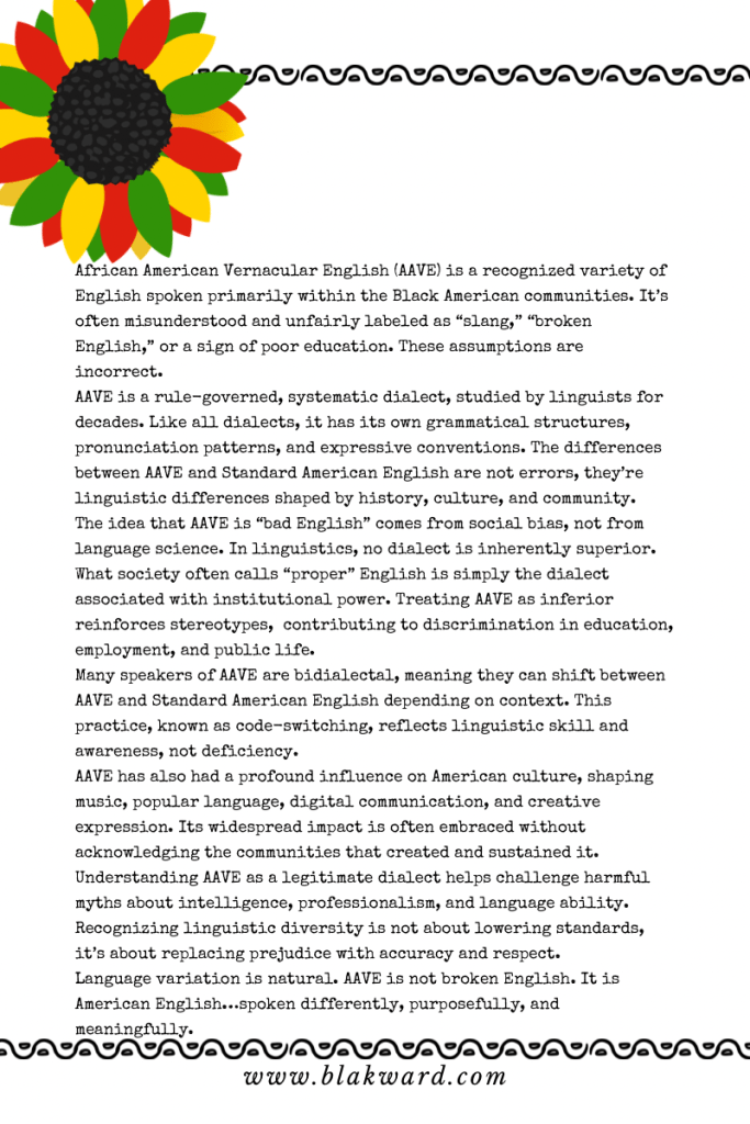 In honor of the 100 year anniversary of Black History Month, I want to give a head nod to AAVE, though I prefer the term Ebonics.